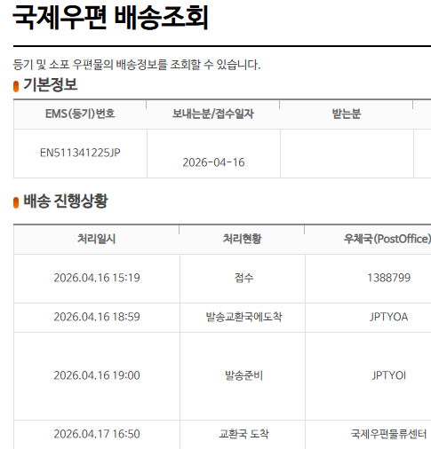 택배언제오나요 Ems EN511341225JP 익ㅓ 제대로오고잇는거맞아여?ㅠㅠㅠ